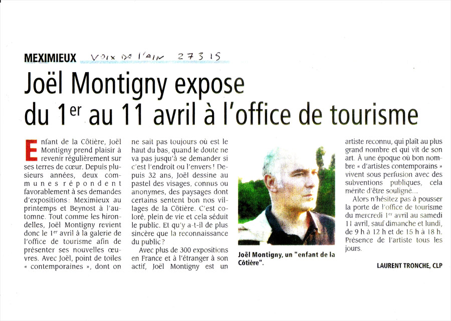 Près de mille articles ont été consacrés à Joël Montigny dans la presse régionale et nationale. En voici une sélection :